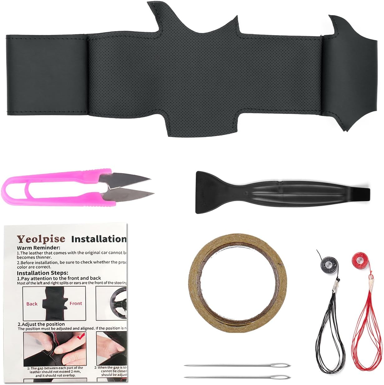 Yeolpise Hand Sewn Steering Wheel Cover Non-Slip Breathable Microfiber Leather Steering Wheel Cover wrap Car Interior Accessories,make every detail of the steering wheel be perfectly wrapped, just like the original factory. Features: 1. Perfectly fit the OEM steering wheel,make every detail of the steering wheel be perfectly wrapped. 2. Made of high-quality microfiber leather, non-slip, breathable and comfortable grip. Give your old steering wheel a new look. 3. Hand Sewing,It takes about 2-3 hours to sew by hand. There is no need to remove the steering wheel, stitching is done directly on the original steering wheel. Applicable Models: Replacement for Ford 2013 Explorer Sport/2011 Police Interceptor Utility Vehicle/2011 Explorer/2011 Edge Sport/2011 Edge. Operation Steps: 1. Put on the steering wheel cover. Make sure the location is correct. In order to ensure that the stitching at the back is not crooked, the position where the leather meets is exactly at the center seam on the original steering wheel. 2. Affix double-sided tape to fix it. You can stick double-sided tape on the stitching on the inside of the leather. Be careful not to stick the double-sided tape on the edge, otherwise the edge may not fit into the gap. 3. Plug the edge. After positioning and sticking the double-sided tape, use the edge plug device to plug the exposed edge into the gap of the steering wheel, and pay attention to use different angles to plug the edge. 4. Hand stitching. Select a line that is 3-5 times the length of the sewing area, and then you can choose a starting point to stitch.