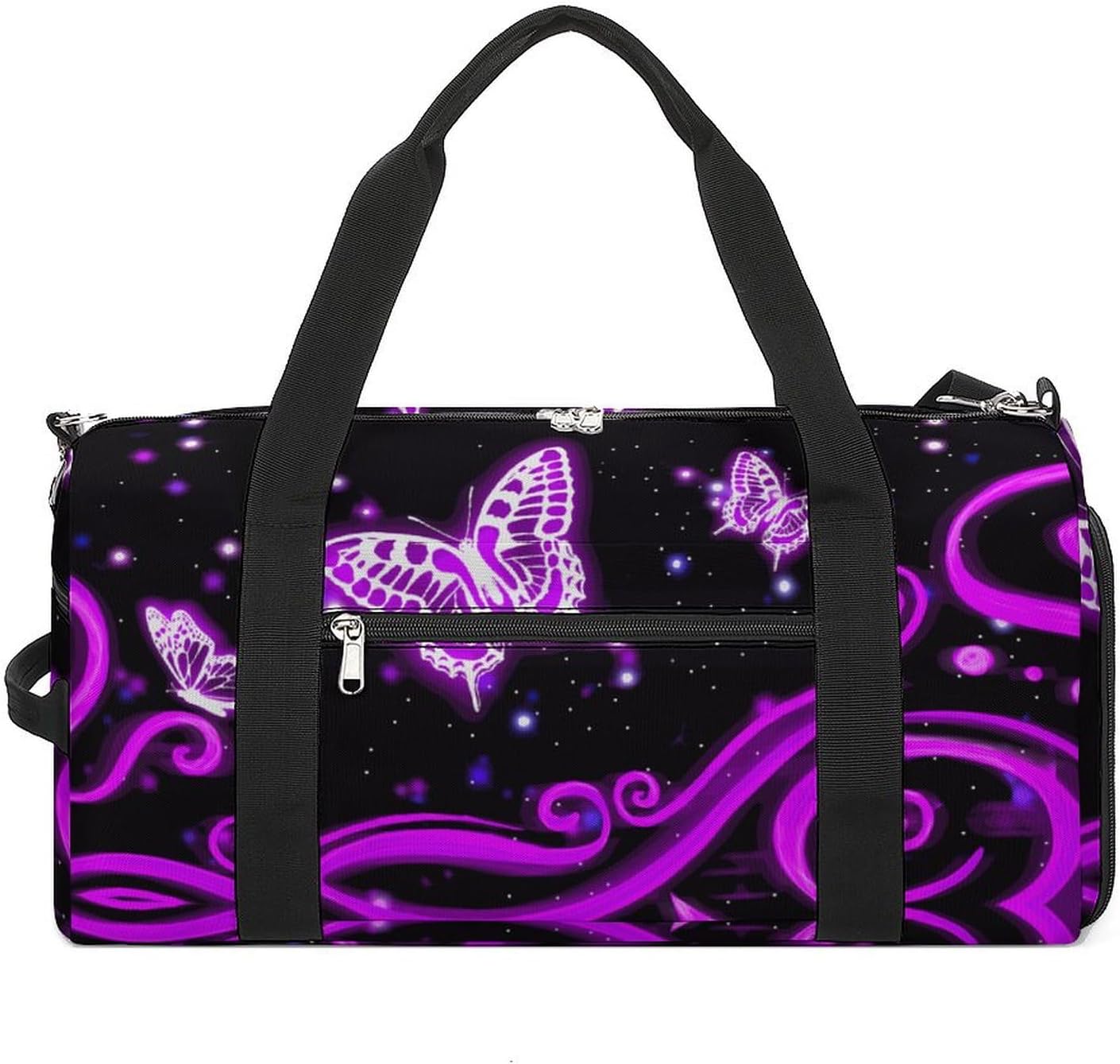 NELife Sport Gym Bag- Wate-Resistant Gym Bag: Made of water and wear resistant nylon fabric,no more worry about the water(The zipper is not water resistant ).- Inner Material: Polyester+Water Resistant PVC.- Dimension:18.1L x 8.9 W x 9.3 H Inch.- Suitable for gym sport bag, travel duffel bag, travel holdall bag, gym holdall, weekender bag, school duffle bag, etc.Waterproof Nylon Fabric- Waterproof, wear resistant and wrinkle resistant.- Travel duffel is easily folded, lightweight, and does not take up space in the suitcase, or closet, or anywhere you want to put it in.Dry Wet Separated- Separate Wet Pocket: Prevent clothes and electronic devices from getting wet which is suitable for swimming or gym exercise.- Separate Shoe Compartment Design: A separate shoe compartment can help you carry and keep your shoes better in your travel bag, even if it is dirty and the other objects still won't get stained.Side Pocket- The easy-access side pocket is perfect for quickly stowing items.- The side handle allows you to hang the gym bag from any existing pole in the locker room or hoLarge Capacity Duffel Bag for Sports and Travel- Many pockets makes it has enough space to put your clothes, shoes, books, umbrella, water bottles, wash set, sports equipments,etc. This sport bag for men and women will easily fit all your sports and travel essentials.- Our gym bag is a perfect reliable companion for both indoor and outdoor sports. It is a great bag for workout, travel, sports activity, tennis, basketball, yoga, fishing, hunting, camping, hiking and many outdoor activities.- Great gift for everyone you love.